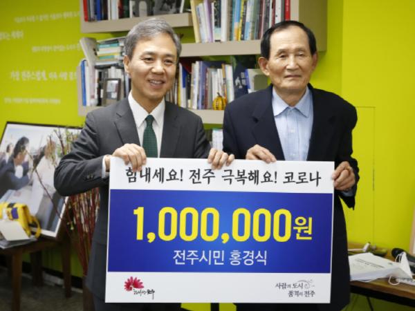 전주시는 12일 홀로 거주하는 홍경식 어르신(77세, 다가동)이 코로나19로 인해 어려움을 겪고 있는 취약계층을 위한 성금 100만원을 전주시에 기탁했다고 밝혔다.