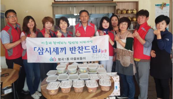 「삼시세끼 반찬드림」사업은 음식 조리가 힘든 독거노인 및 장애인세대에게 매월 밑반찬을 정성껏 만들어 전달하며 건강과 안부를 확인하는 형곡1동 마을보듬이 특화사업이다.