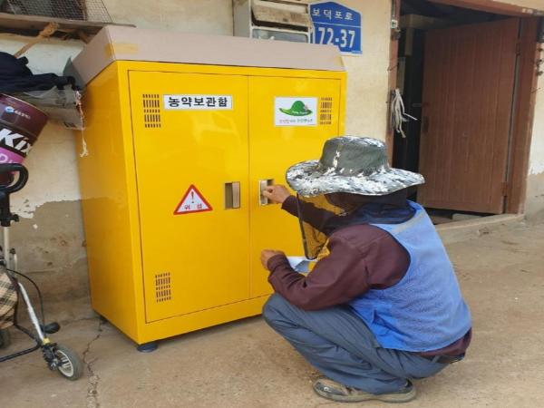 농약안전보관함 보급사업은 농촌지역에서 주로 사용되는 농약을 안전하게 사용·관리할 수 있도록 마을 내 생명안전망을 구축하는 자살위험 환경개선 사업으로, 작년까지 5개 마을, 257개를 보급했으며, 올해는 1,000개를 보급할 계획이다.