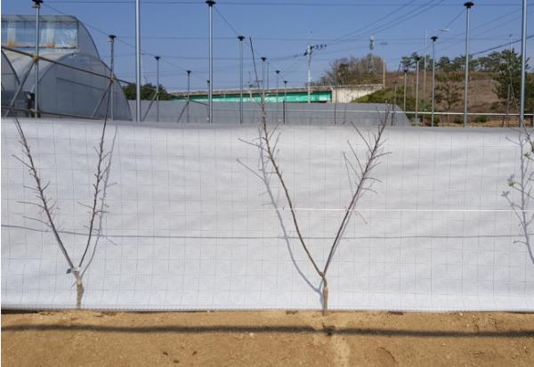 앞서 군은 지난달 묘목 간 거리를 1.5m, 열간 거리를 3.2m로 식재해 ‘사과 2축형’ 실증시험포를 조성했다.