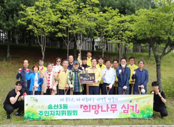 의정부시 송산3동 주민자치위원회(위원장 임용혁)는 5월 12일 The G&B City 프로젝트 사업의 일환으로 추진 중인 송산권역 ‘희망나무 심기’운동에 동참하며 주민 1인 1나무 심기 릴레이 운동을 전개했다.