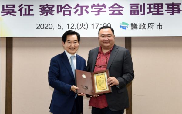 이날 전달식에는 중국 차하얼학회 한팡밍(韓方明) 회장을 대신하여 오정(吳征) 차하얼학회 부이사장이 참석한 가운데, 의정부시는 대신 참석한 오정(吳征) 부이사장에게 감사패를 전달했다.