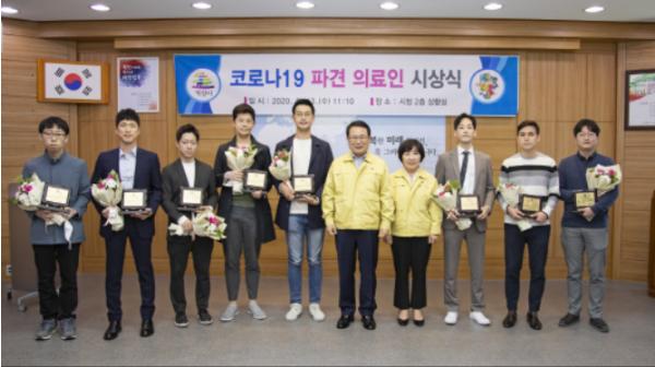 시에 따르면 지난 2월 23일부터 현재까지 대구·경북지역 등에 파견된 의료인은 공중보건의사 10명으로 이들에게 감염병 예방활동에 적극 동참하여준 노고를 치하하며 표창패를 수여했다.