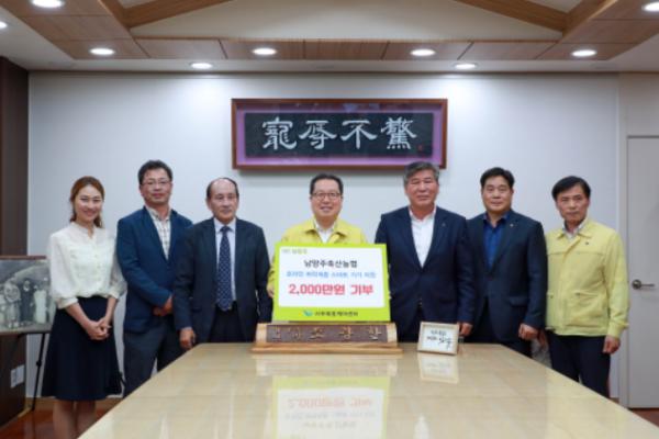 남양주시 다산동에 소재한 남양주시 축산농협(조합장 이덕우)에서 13일 코로나19 극복을 위한 후원금 2,000만원을 서부희망케어센터(센터장 신영미)에 전달했다.