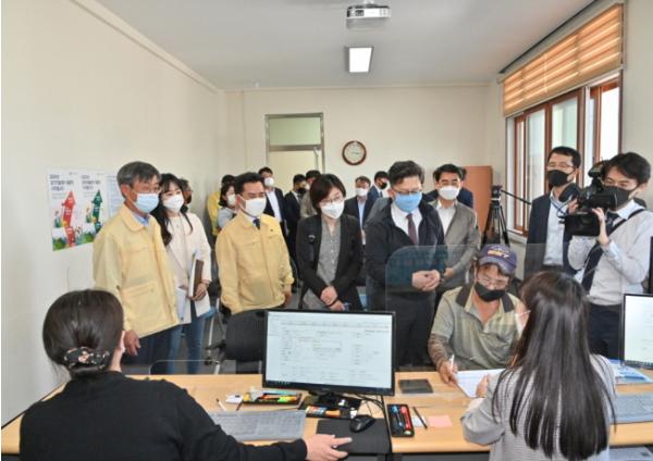 지난 12일 김현수 농림축산식품부장관이 5월부터 시행되는 공익직불제 신청?접수 현장을 둘러보기 위해 부여군을 방문했다.