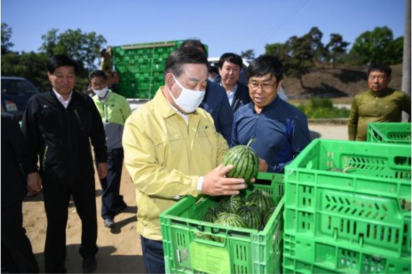 소비자 맞춤형 과채단지 조성시범사업으로 애플수박을 생산하는 신양작목반 대표 서기원 외 6농가는 1.2㏊(28동)의 재배단지를 조성하고 적절한 비배관리와 관수방법, 착과 후 관리 등 철저한 재배관리로 고품질의 애플수박을 생산하고 있다.