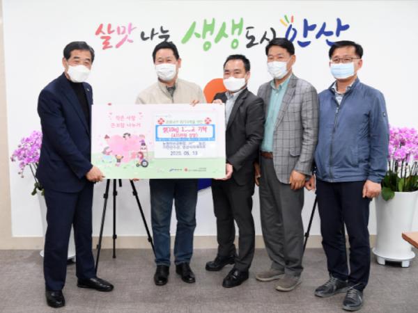 기탁에 참여한 농협안산공판장, 안산농산물㈜, 안산수산㈜, 안산식자재마트 ㈜성한 대표 등은 쌀 150포(각 10㎏·450만원 상당)를 모아 코로나19로 지친 시민들에게 희망을 주기 위해 후원품을 마련했다.