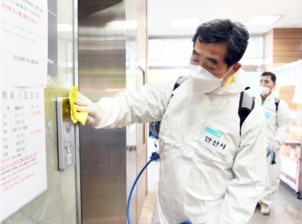 안산시(시장 윤화섭)는 3일 통장, 체육회 등 민간단체와 윤화섭 안산시장을 비롯한 공무원 비상근무조 등 모두 2천100여명을 투입해 시 전역에서 코로나바이러스감염증-19(코로나19) 방역을 실시했다.