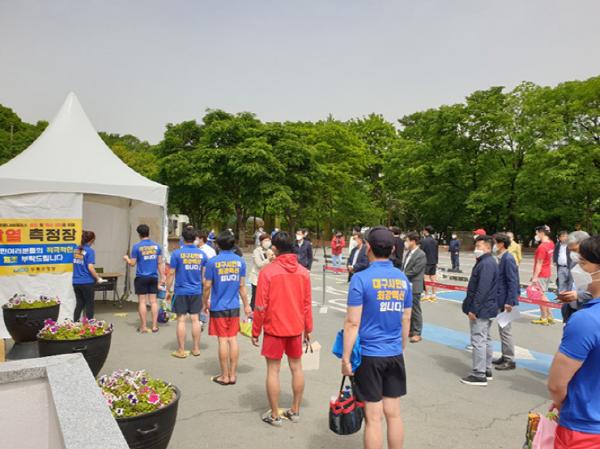 대구시는 코로나19 방역체계가 생활 속 거리두기로 전환됨에 따라 휴장상태인 두류수영장을 20일부터 개방한다. 이에 수영장 재개방에 대비해 안전한 수영 환경 조성을 위해 코로나19 긴급 상황 발생 모의훈련을 실시했다.