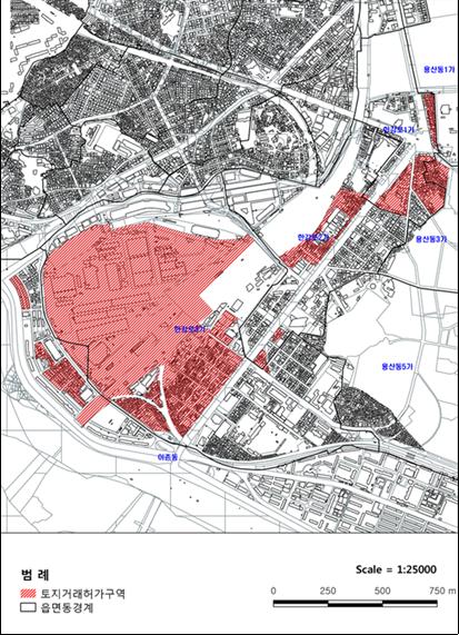 토지거래허가구역에서 허가대상 면적(주거지역 18㎡, 상업지역 20㎡ 등)을 초과하는 토지(주택인 경우 대지지분면적을 의미) 취득을 위한 계약을 체결하고자 하는 자는 사전에 관할 구청장(용산구청장)의 허가를 받아야 한다.