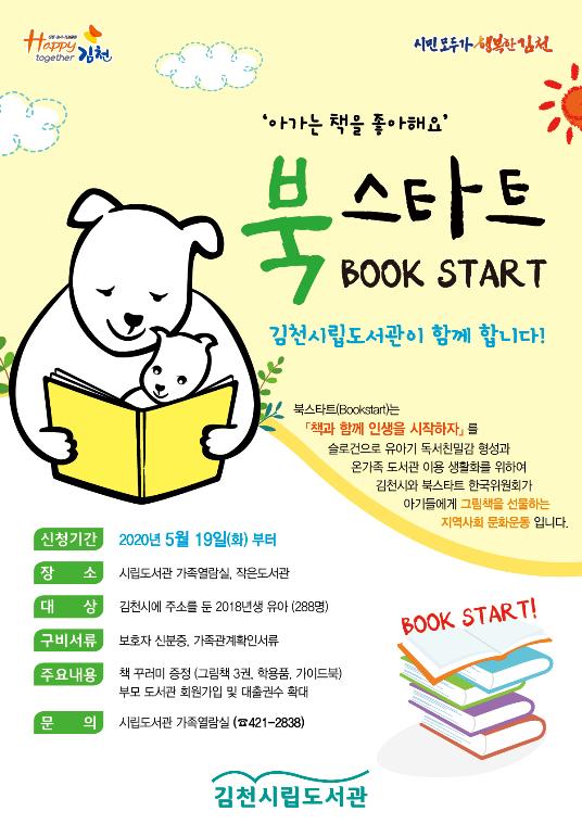 김천시립도서관에서는 해피투게더 김천 운동의 일환으로 이제 막 책읽기를 시작하는 3세 유아들에게 그림책 3권, 학용품, 독서안내서 등을 선물하는 북스타트(Bookstart) 운동을 오는 5월 19일부터 추진한다.