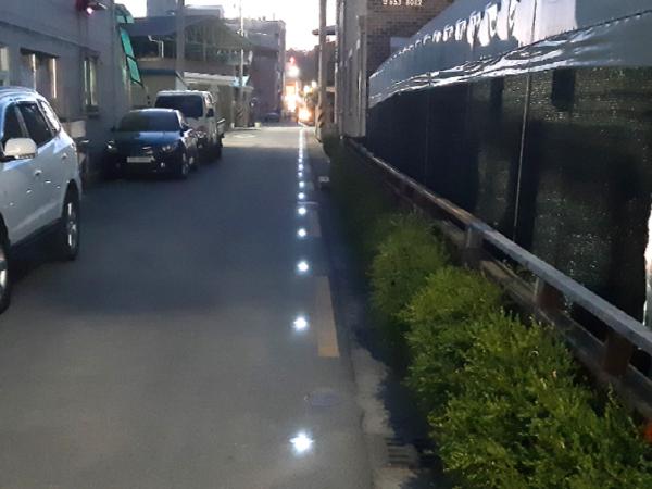 태양광 도로안심등은 지면에 부착하는 태양광 충전식 발광장치로, 별도의 전기시설이 필요 없어, 설치장소에 구애받지 않는다. 또, 낮 동안 충전된 태양광으로 야간에 빛을 내는 친환경이고 경제적인 조명으로, 어두운 골목길의 미관을 개선하는 효과도 겸하고 있다.
