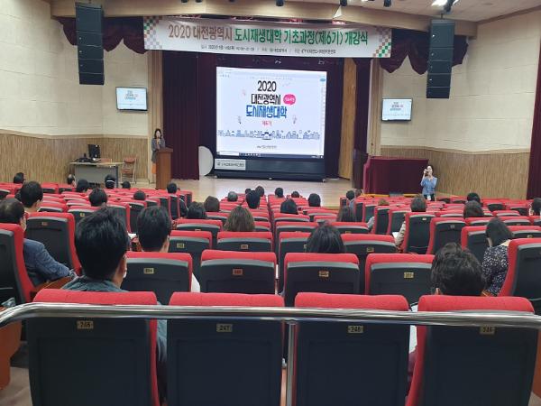 대전시(대전도시재생지원센터)는 14일 저녁 7시 대전평생교육진흥원 식장산홀에서 도시재생대학 입학생 68명이 참석한 가운데 '2020 대전광역시 도시재생대학 기초과정(제6기) 입학식’을 가졌다.