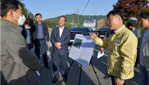 장영수 군수가 13일 제5차 국도?국지도 5개년 계획 수립을 위한 한국개발연구원(KDI)의 일괄예비타당성조사 연구용역 현장을 찾아 국도26호선 진안군 진안읍 구룡리 ~ 장수군 장수읍 춘송리 10.97km 구간에 대해 국도개량사업이 우선 반영될 수 있도록 필요성과 당위성을 피력하는데 총력을 기울였다