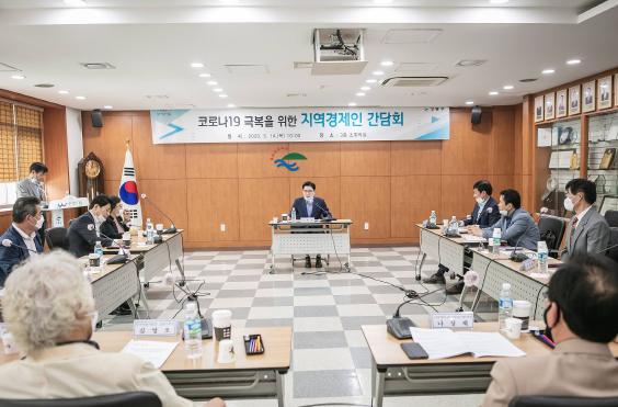이정훈 강동구청장이 5월 14일(목) 오전10시 구청 3층 소회의실에서 열린 코로나19 극복 지역경제인 간담회에 참석했다. 이번 간담회는 관내 소상공인, 업종별 대표자들과 함께 코로나19로 인한 지역사회 경제인들의 애로사항과 건의사항을 청취하는 기회를 가지고자 마련됐다.