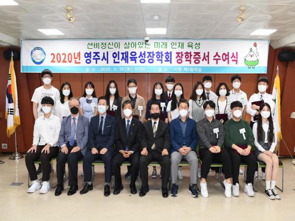 (재)영주시인재육성장학회(이사장 장욱현)는 지난 16일 영주시청에서 ‘2020년 영주시인재육성장학회 장학증서 수여식’을 개최했다.