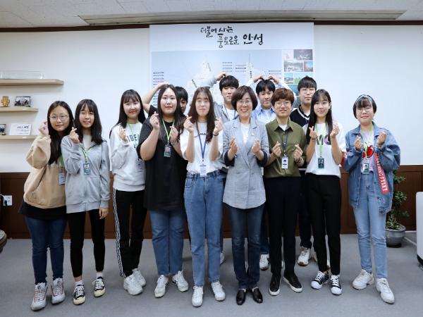 김보라 안성시장은 5월 16일(토), 안성시청 시장실에서 청소년 야호기자단을 비롯한 안성시청소년참여위원회, 안성시청소년운영위원회 학생 등 안성시 청소년 12명을 만나 인터뷰를 가졌다.