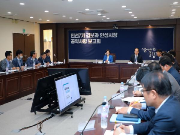 이번 공약사항 추진계획 보고회는 김보라 안성시장이 취임한지 한달여만인 18일 안성시청 2층 상황실에서 개최됐다.