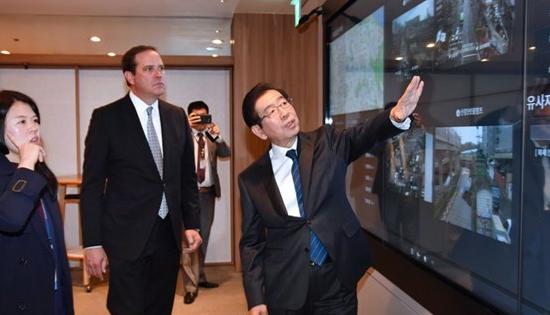 코로나19 발생 전인 '20년 1월까지 스테판 뢰벤 스웨덴 총리, 필립 벨기에 국왕, 펠리페6세 스페인 국왕, 마르따 루시아 라미레스 콜롬비아 부통령, 세드리크 오 프랑스 디지털 담당 국무장관, 장궈칭 중국 톈진시장, 만수르 야바시 터키 앙카라시 시장, 글로벌 IT기업 시스코의 척 로빈스 회장 등이 ‘디지털 시민시장실’을 참관했다.
