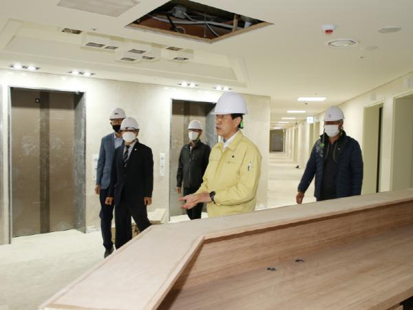 조길형 충주시장이 15일 수안보면에 있는 에이스 여성 암 전문 재활병원(병원장 라호진) 건립 현장을 방문하고 관계자들을 격려했다.