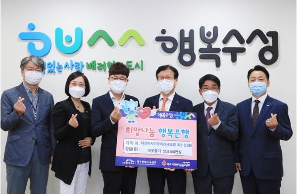 수성구청관계자는 “모두가 힘든 시기임에도 더 어려운 이웃을 위해 성금을 전달해 주셔서 감사하다”며 “기탁해 주신 성금은 도움이 필요한 곳에 잘 전달하겠다”고 말했다.