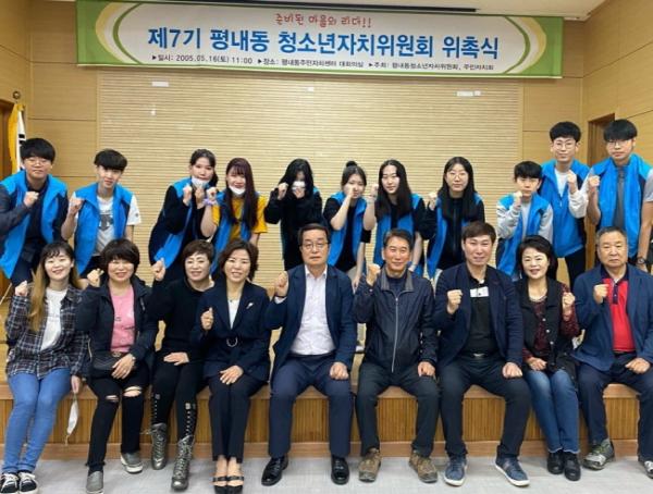 평내동주민자치회(회장 김영길)는 지난 16일 11시 평내동주민센터 3층 대강당에서 마을의 미래를 이끌어나갈 제7기 평내동 청소년자치위원회 위촉식을 진행했다.