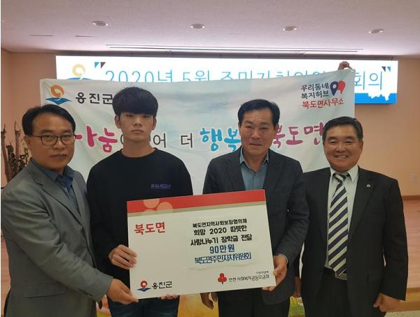 옹진군 북도면주민자치위원회(위원장 이근덕)는 지난15일 인천사회복지공동모금회를 통해 북도면지역사회보장협의체에 장학금 90만원을 기부했다고 17일 밝혔다.