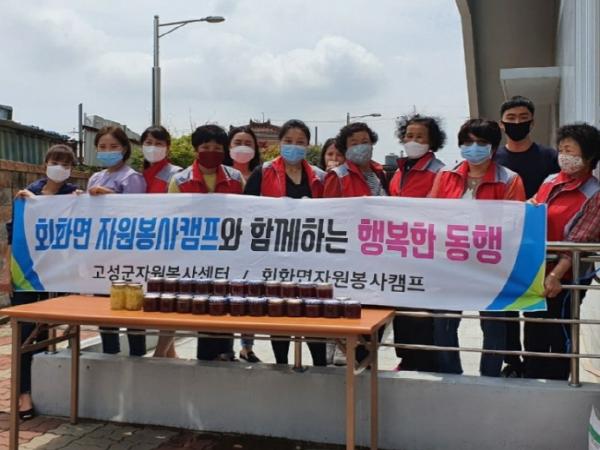 경남 고성군 회화면 자원봉사캠프는 16일 회화면사무소에서 ‘맛과 향을 담은 수제 딸기잼 만들기’ 프로그램을 가졌다.