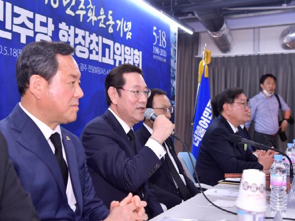 이날 최고위원회의에서 이용섭 광주시장은 “5·18민주화운동이 40주년을 맞았지만 최초 발포 명령자를 비롯해 행방불명자, 헬기사격 등의 진실이 아직 밝혀지지 않았고 5·18에 대한 왜곡과 폄훼가 계속되고 있다”면서 “이를 근절하기 위해 ‘5·18역사왜곡처벌 특별법’을 제21대 국회 제1호 법안으로 제정해 달라”고 요청했다.