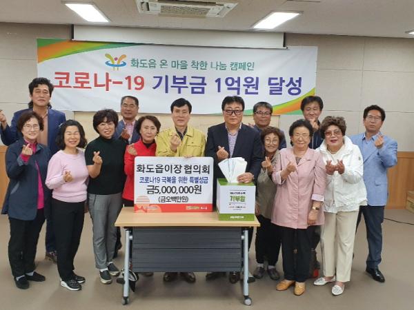 화도읍은 지난 18일 화도읍 이장협의회가 정부 긴급재난지원금 500만원을 추가로 기탁하면서 총 1억135만원의 기부금이 모금되어 당초 목표했던 금액 1억원을 초과 달성했다.