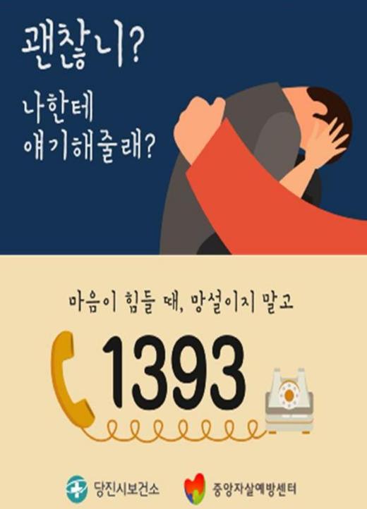 이에 따라 당진시 보건소는 민·관기관, 당진시민을 대상으로 안부문자 메시지를 보내는 ‘괜찮니? Day 캠페인’을 추진한다. ‘괜찮니?’ 15초 영상과 안부를 묻는 메시지, 자살예방 1393 전화번호를 담고 있는 이 문자메시지는 주변의 지인들에게 릴레이 형식으로 전달해 많은 시민들이 공유토록 할 계획이다.