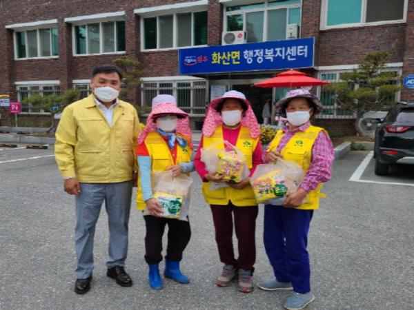 19일 화산면은 지난 18일 노인일자리 참여자들에게 코로나19 예방을 위한 사전교육을 실시하고, 참여 어르신을 위한 선물꾸러미 36개를 직접 준비해 전달했다고 밝혔따.