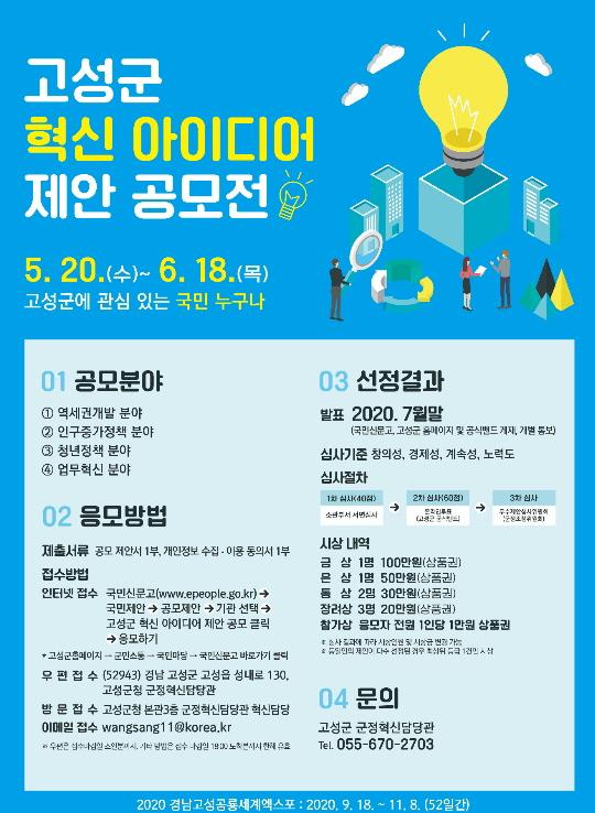 고성군에 관심이 있는 국민은 누구나 참여가능하며, 공모 기간은 5월 20일부터 6월 18일까지다.