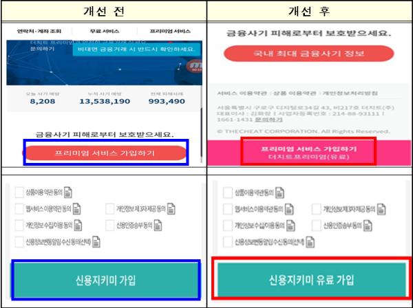 다만, 고지 사항이 시각적으로 불분명하거나 유료라는 사실이 명확히 고지되지 않는 등 이용자의 오인을 유발할 우려가 있는 사항이 일부 발견되어 이를 보다 명확히 할 수 있도록 개선조치 하였다.