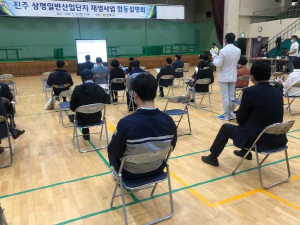 진주시는 19일 오전 11시 상평동 생활체육관에서 코로나19 감염 예방을 위한 생활 속 거리두기 기본지침을 준수한 가운데 진주 상평일반산업단지 재생사업 관련 합동설명회를 개최하였다고 밝혔다.