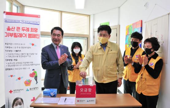 이에 따라 박태완 중구청장은 대한적십자사 울산지사가 주관하는 ‘울산 큰 두레 희망기부릴레이 캠페인’에 선불카드를 전액 전달했다.