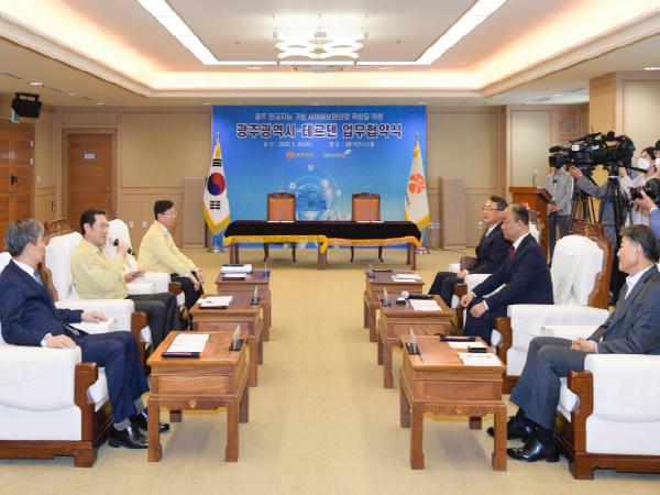 광주시와 ㈜테르텐은 업무협약을 통해 광주 인공지능 클러스터 조성을 위한 사이버보안 관련 공동연구와 기술개발에 함께 노력하며 성공적인 인공지능 산업 생태계 조성을 위해 상호 협력키로 했다.