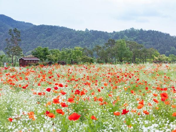 최근 모든 꽃들이 개화하면서 장관을 이뤄 관광객들의 큰 호응을 얻고 있으며 특히, 뿅뿅다리 입구 푸른색의 수레국화와 2,500㎡ 규모로 조성한 꽃양귀비, 안개초는 회룡포를 찾는 이들의 탄성을 자아내고 있다.
