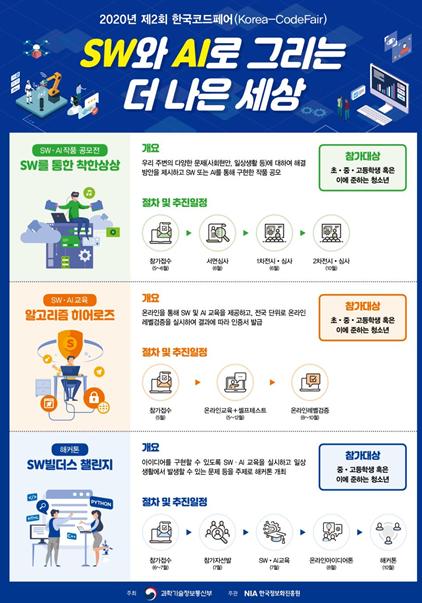 과학기술정보통신부(장관 최기영)는 초·중등 학생들의 소프트웨어 융합역량 강화와 소프트웨어 교육의 저변 확대를 위해 ‘2020년 제2회 한국코드페어’를 추진한다.