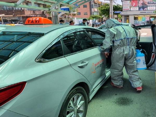 우선 20일 관내 택시업체인 동성운수, 금성공사, 운수협동조합 3개소에 자체 소독강화를 지시했다.