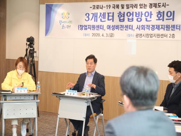 광명시는 3일 오전 소하동 창업지원센터에서 창업지원센터, 여성새일센터, 사회적경제지원센터 3개 센터 협력 회의를 개최했다.