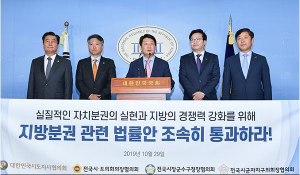 그동안 권영진 대한민국시도지사협의회 회장은 전국시도의회의장협의회 회장(신원철 서울시의회의장), 전국시장군수구청장협의회 회장(염태영 수원시장), 전국시군자치구의회의장협의회 회장(강필구 전남영광군의회의장)과 더불어 국회를 방문하는 등 지방분권 관련 법안 통과를 위해 혼신의 노력을 해왔다.