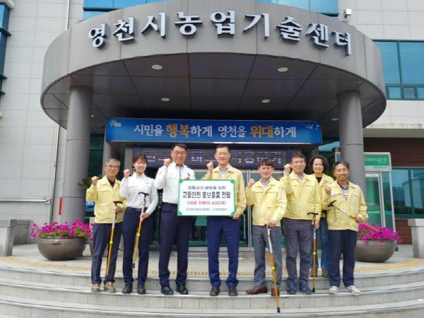 「농기계 사고 다발지역 개선 지원 사업」의 일환으로 추진되는 야광 반사지 부착 효도지팡이 배부는 보행용 지팡이에 반사테이프를 크게 붙여 야간 보행자의 시인성을 높이는 안전용품인 효도지팡이 배부로 도로주행 농기계를 비롯한 보행 중 교통사고에 노출되기 쉬운 고령자의 교통사고 예방 홍보 교육 시 활용하고자 하는 것이다. 이 홍보물은 농업기술센터에서는 농기계 순회수리 및 교육 시 900개, 영천경찰서에서는 복지관 및 노인정 이용 관내 어르신들에게 600개를 배부할 계획이다.