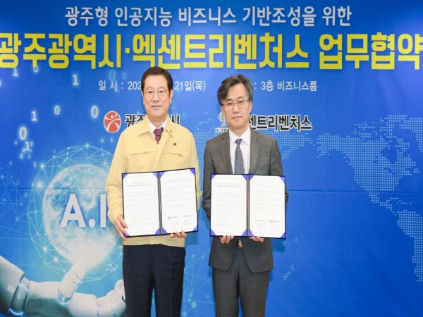 광주광역시는 ㈜엑센트리벤처스와 광주형 인공지능 비즈니스 기반 조성을 위한 10번째 업무협약을 체결하고 ‘엑센트리벤처스-광주센터’ 개소를 통해 인공지능 스타트업을 포함한 기업 발굴 및 육성 등 광주 인공지능 생태계 조성에 적극 협력키로 했다.
