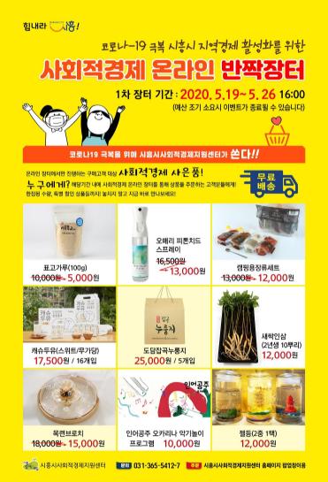 이에 기존의 오프라인 장터를 온라인으로 대체해 5월 19일부터 5월 26일까지 ‘2020년 사회적경제 온라인 반짝장터’를 진행한다.