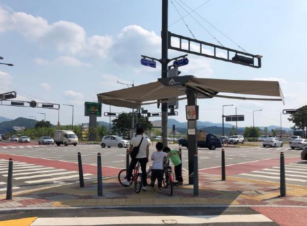 세종특별자치시 대평동(동장 윤상근)은 여름철 폭염을 대비해 종합운동장 교차로와 대평삼거리 등 6곳에 스마트 그늘막 설치를 마무리했다고 22일 밝혔다.
