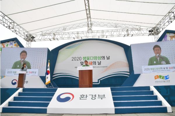 ‘자연에 답이 있다(Our solutions are in nature)’라는 주제로 개최 된 이번 행사는 생활 속 거리두기 실천을 위해 야외 공간에서 조명래 환경부장관, 이철우 경상북도지사, 강영석 상주시장 등 50여 명이 참 석한 가운데 개최됐다.