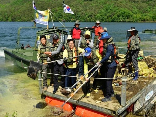 장성군과 상무대 육군포병?공병학교, 장성군해병대전우회가 장성호 환경 보호를 위해 힘을 모았다. 군은 지난 11일부터 장성호 환경정화활동을 시작했다.