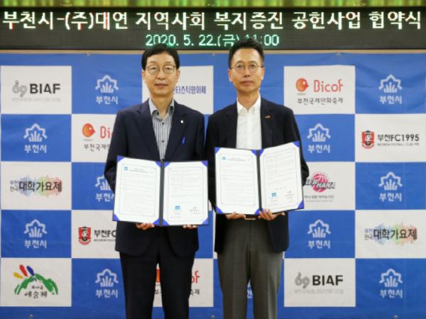 부천시는 지난 22일 부천시청 만남실에서 ㈜대연(대표이사 김대호)과 저소득가정 아동 건강을 위한 지역사회 복지증진 공헌사업 협약을 체결했다.