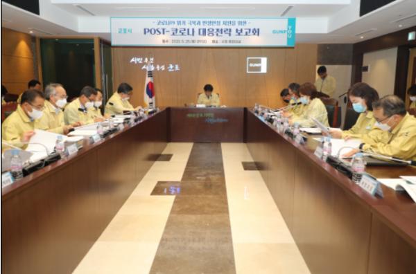 시는 25일 시청 중회의실에서 한대희 시장 주재로 ‘POST-코로나 대응전략 보고회’를 개최하고, 민생경제·일자리산업·사회문화·생활방역 등 4대 분야 43개 사업이 담긴 대응전략을 발굴했다.